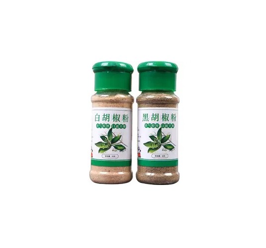 胡椒粉、孜然粉、辣椒粉、鹽和胡椒等產品用于日常烹飪和調味。產品常用玻璃圓瓶,規格含量小。如圖所示;