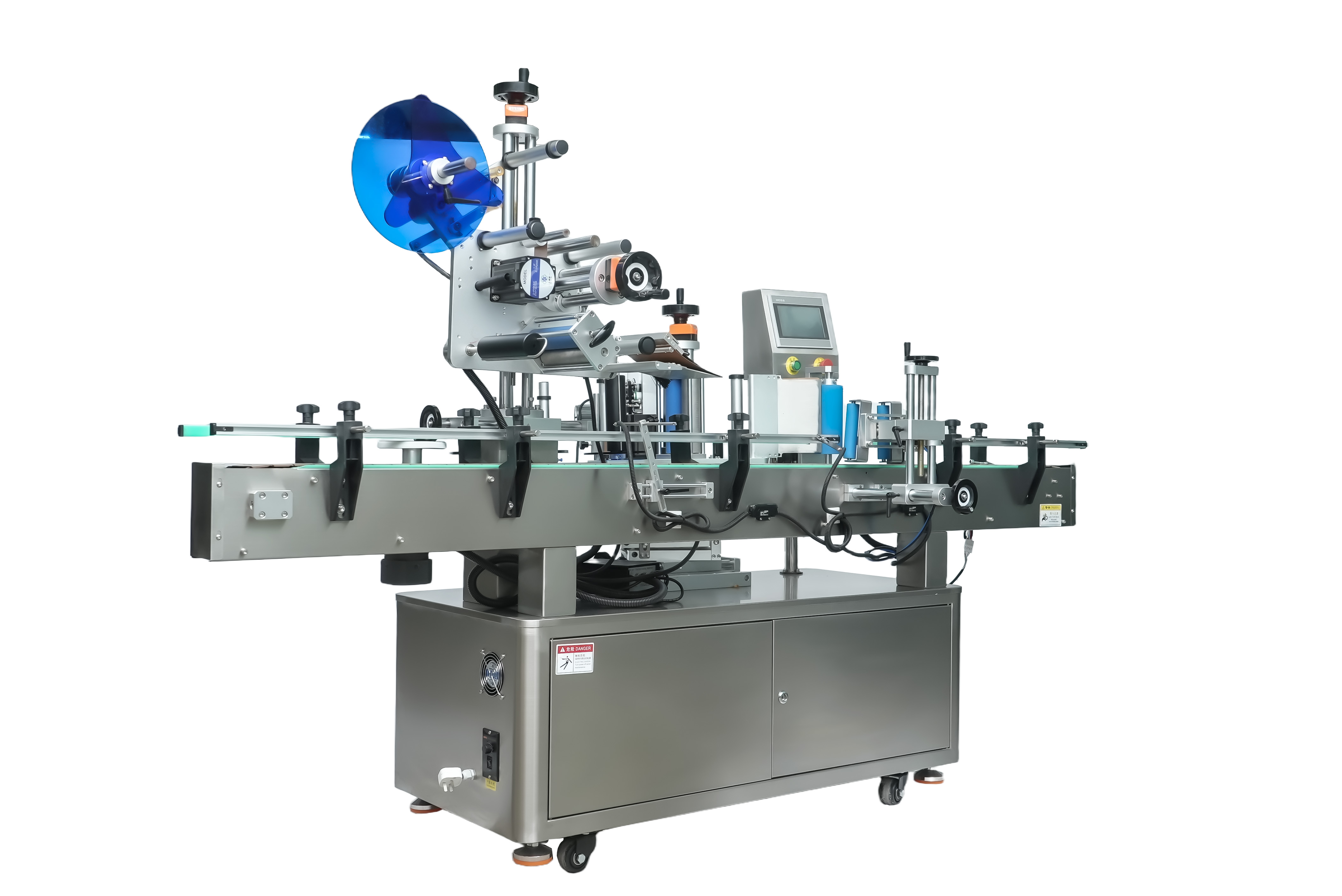 全自動上平面+定位圓瓶貼標機是一款功能強大且適應性廣泛的智能貼標設備,專為滿足多樣化產品的貼標需求而設計。它集上平面貼標與圓瓶精準定位貼標功能于一身,不僅能夠高效、精準地在各類產品的上平面完成貼標作業,對于圓瓶產品,更能憑借其獨特的定位系統,實現瓶身正背標、瓶頸標等多標的高精度自動貼標。通過選配熱打碼機、噴碼機或激光打碼設備,可在標簽上同步打印生產日期、批次號、二維碼等關鍵信息,達成貼標與標識一體化的高效功能,全方位滿足不同行業的生產標識需求。